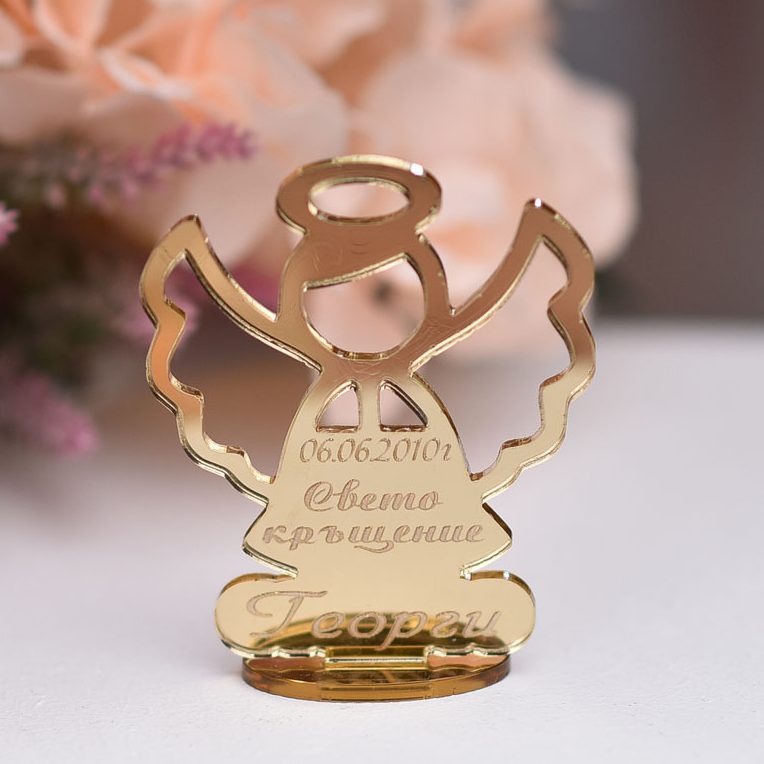 Лазарно изрязани подарачета за гости,от златен огледален перциглас.