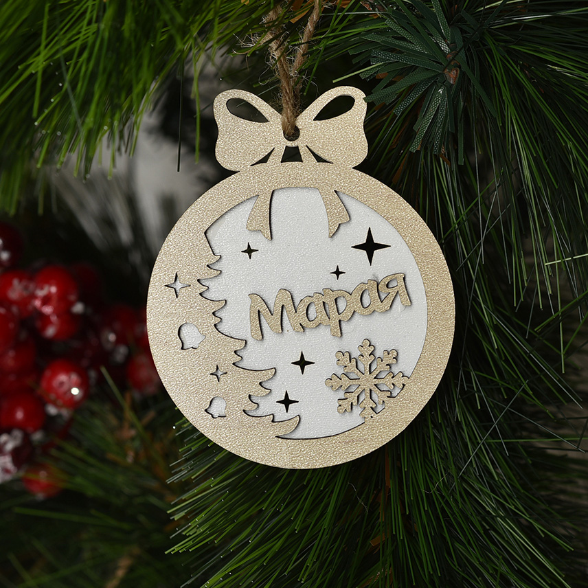 Двупластова персонализирана, лазерно изрязана играчка за елха.