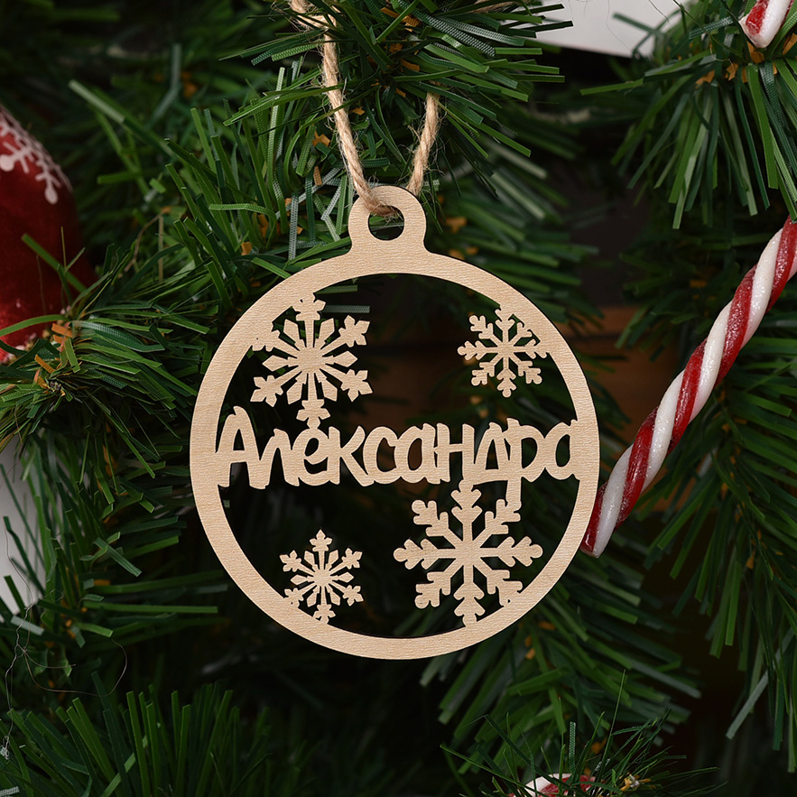 Персонализирана, лазерно изрязана, играчка за елха от МДФ материал.