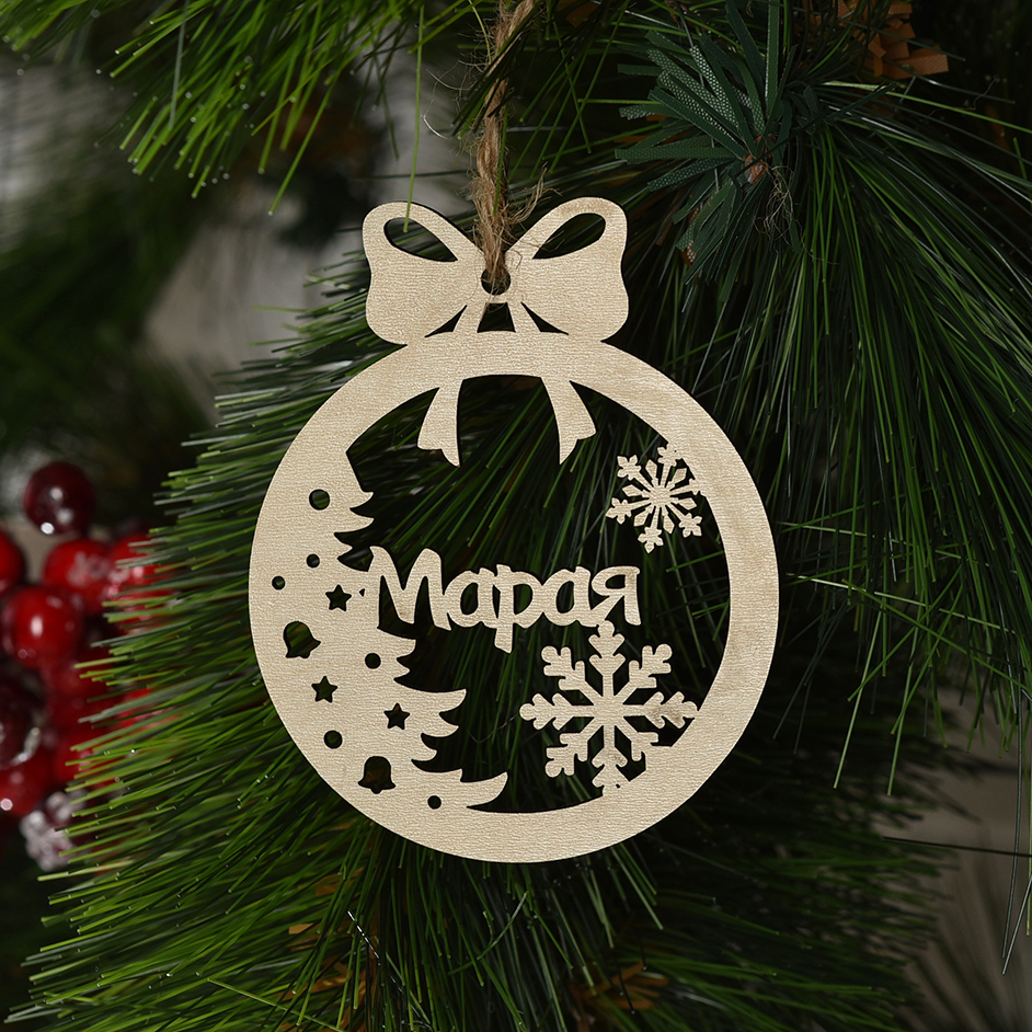 Персонализирана, лазерно изрязана, играчка за елха от МДФ материал.