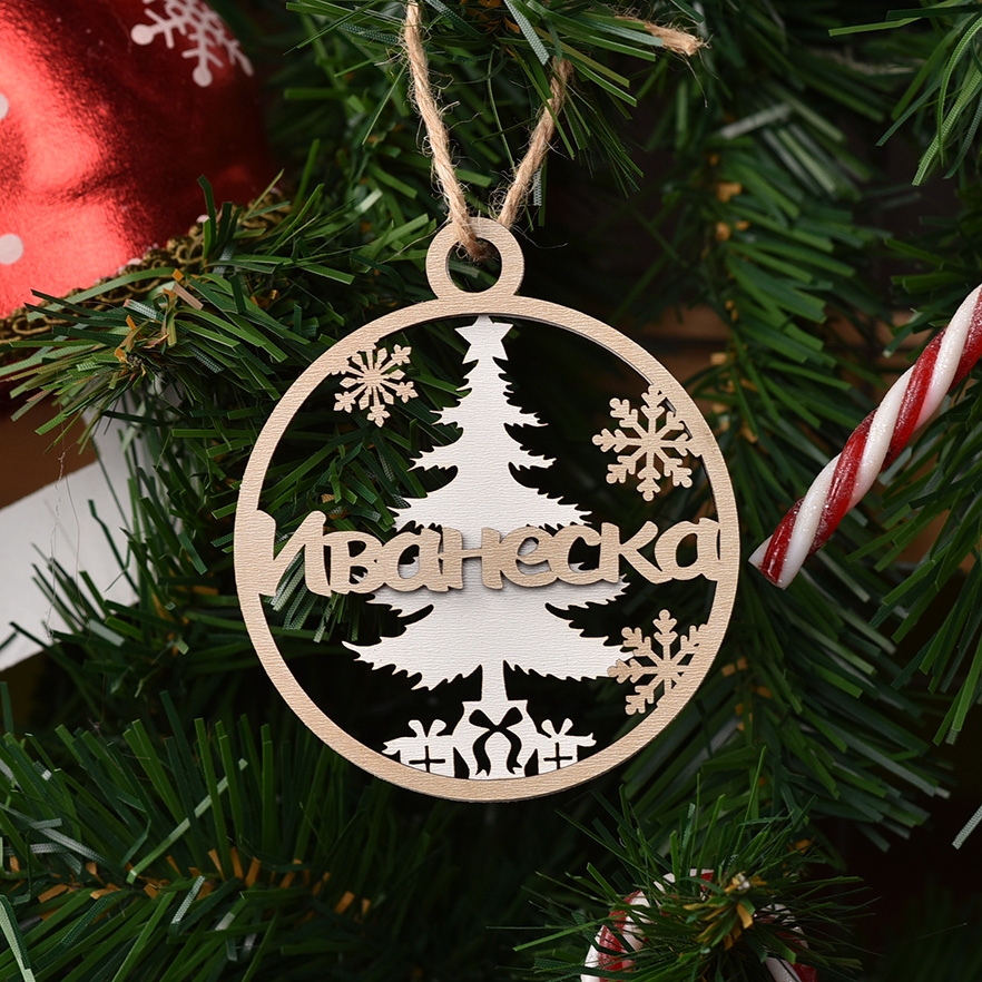 Двупластова персонализирана, лазерно изрязана играчка за елха.