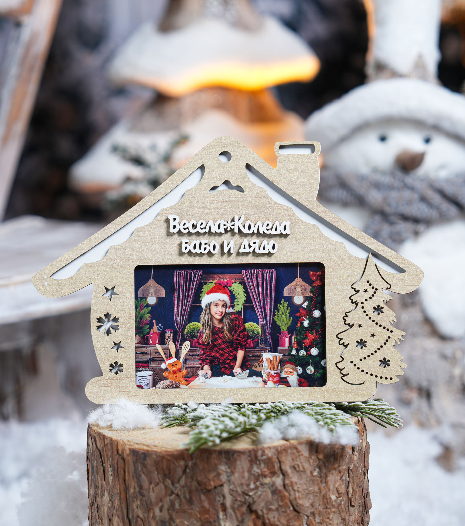 Дървена коледна рамка